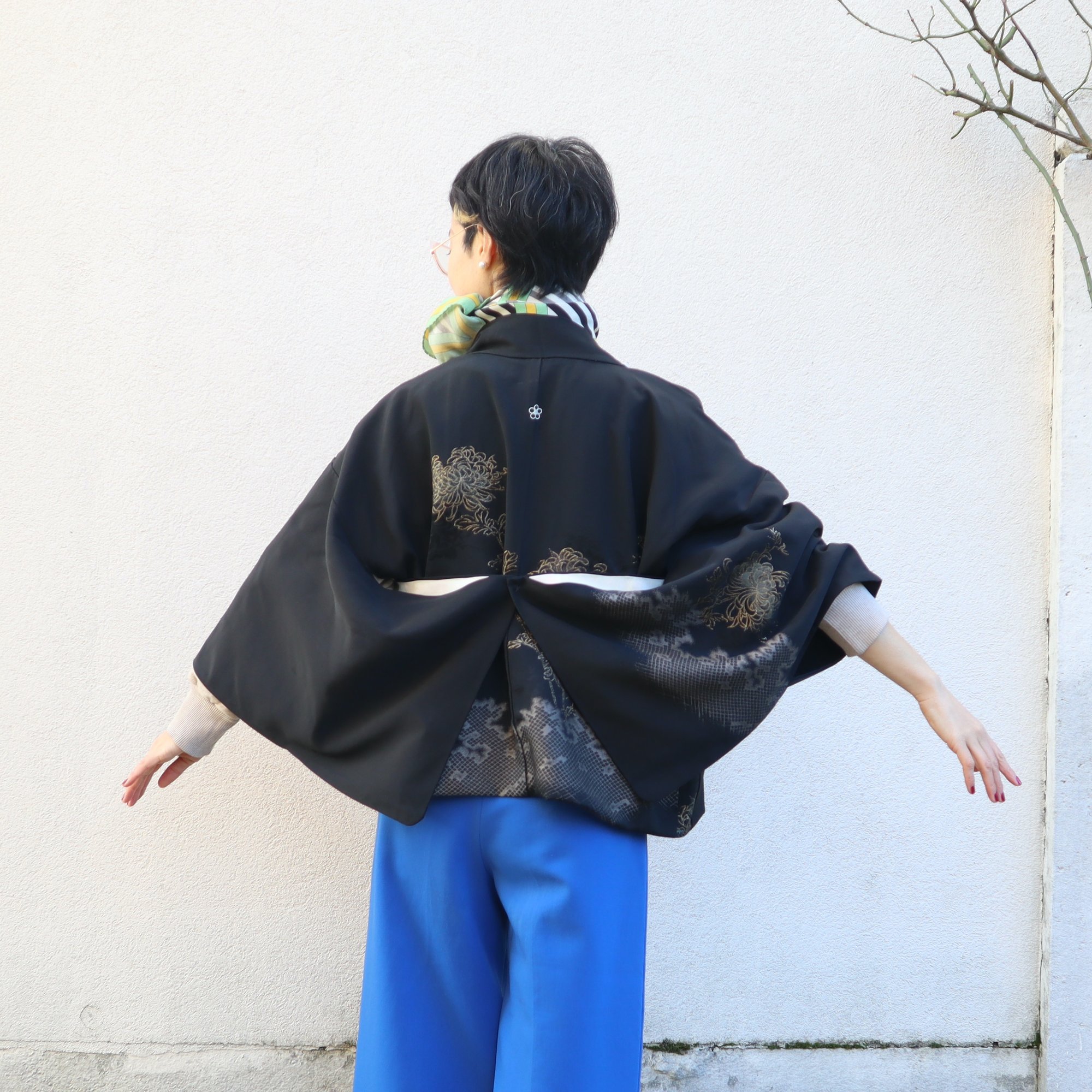 HAORI court, c'est une veste faite avec un HAORI (manteau pour KIMONO) ancien qui vient de Japon.