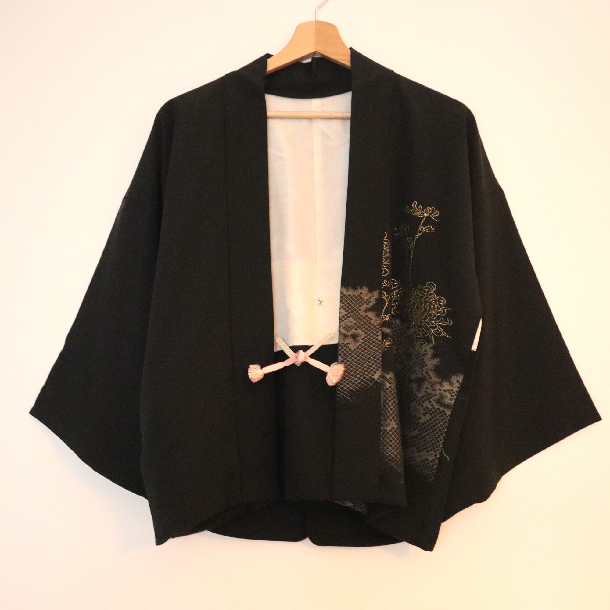 Ce Haori est orné du blason familial (kamon) à motif de fleur du prunier.