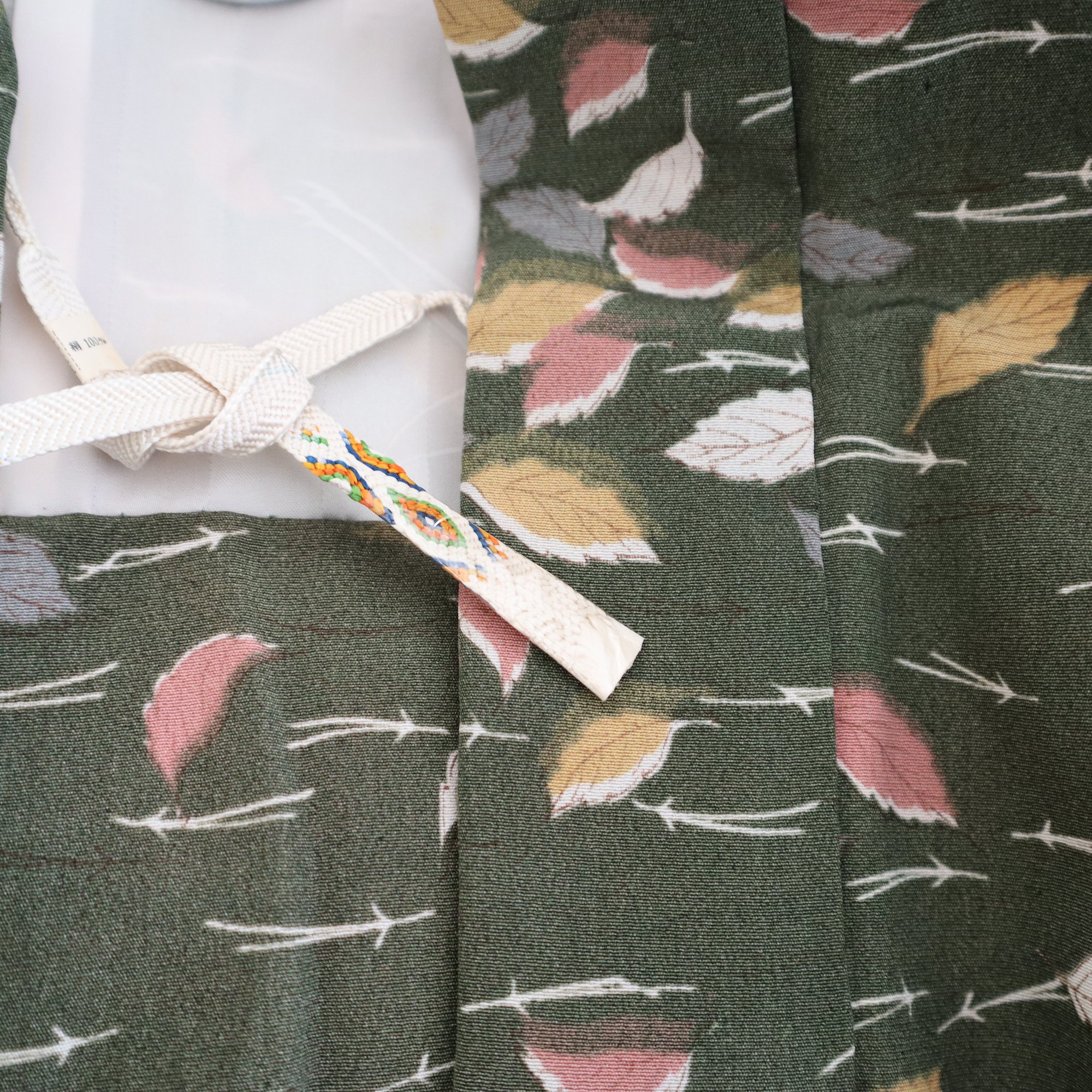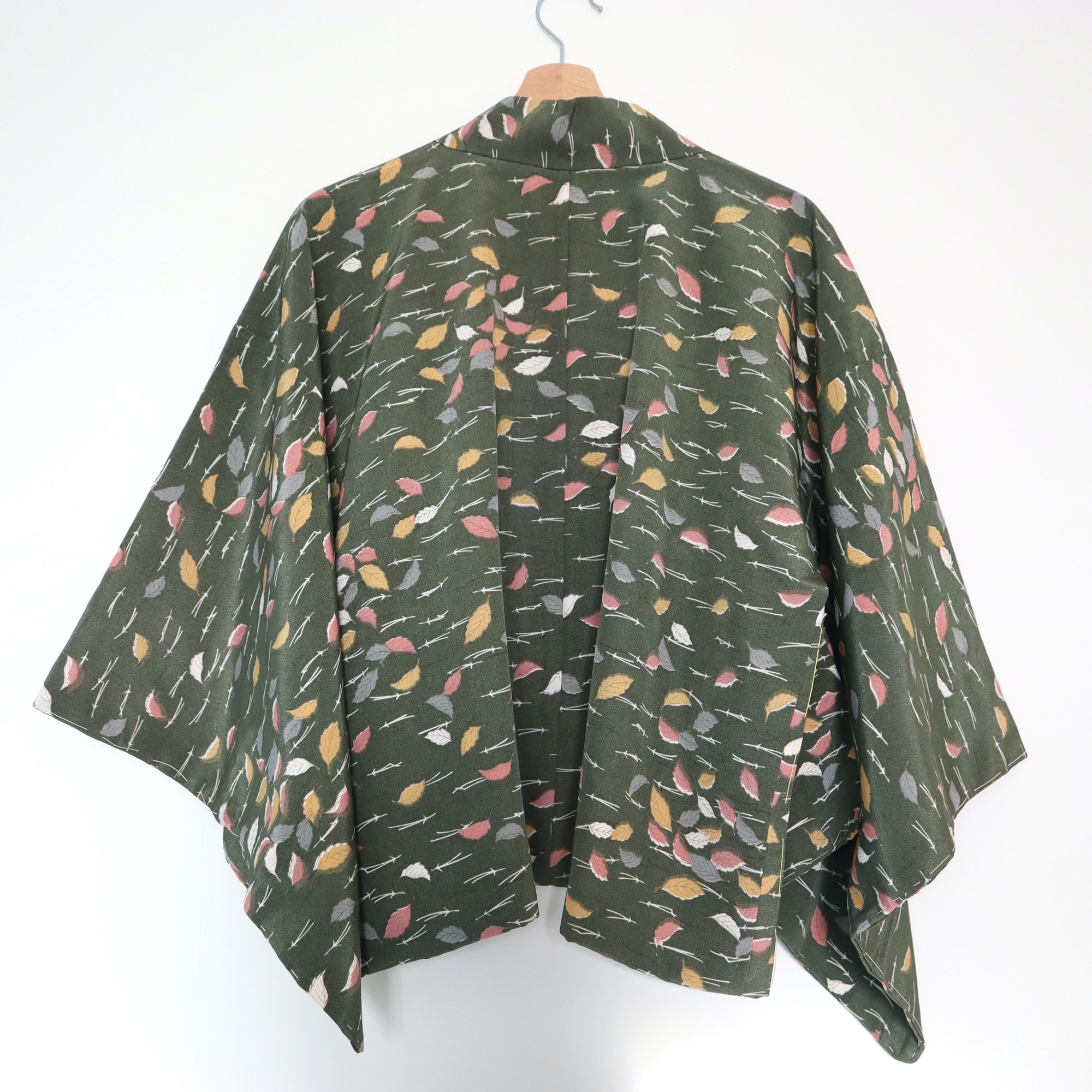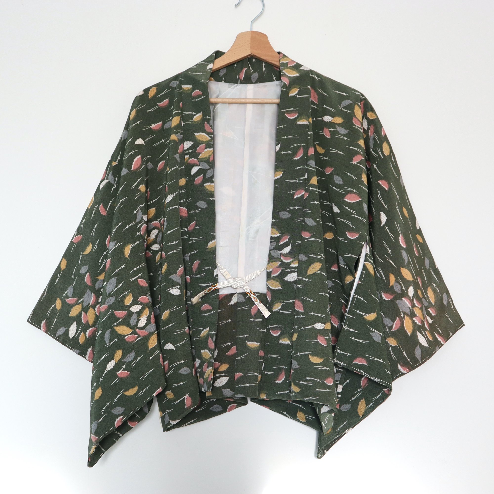 HAORI court, c'est une veste faite avec un HAORI (manteau pour KIMONO) ancien. Vous pouvez le porter à la maison comme gilet ou comme manteau pour sortir. Et, comme il n'est pas coupé, il est possible de le faire revenir en manteau traditionnel si vous le souhaitez un jour.