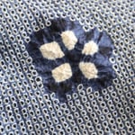 On cache certaines parties du tissu en les nouant avec du fil. Ces parties cachées ne seront pas touchées par la teinture et resteront de la couleur du tissu. *