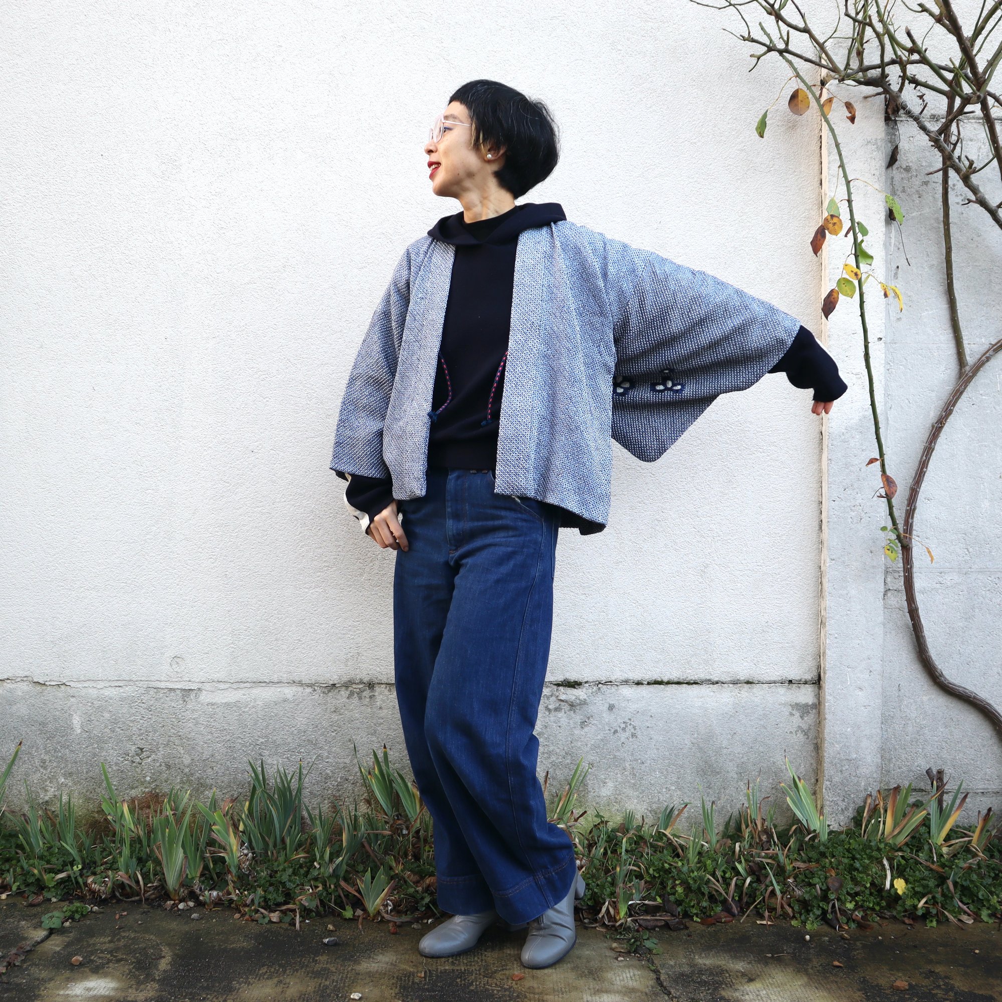 HAORI court, c'est une veste faite avec un HAORI (manteau pour KIMONO) ancien qui vient de Japon.