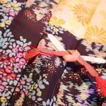 Sur ce kimono, on voit des fleurs qui poussent au bord de l'eau.